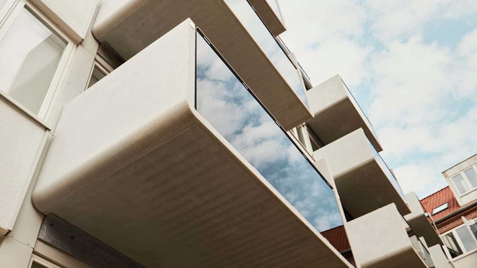 A new tiled roof with fixed roofing underlay was installed. As part of the work on the roof, existing loft spaces were converted into homes. This created 32 new rooftop homes. New doors, windows and balconies were installed in the rooftop homes.