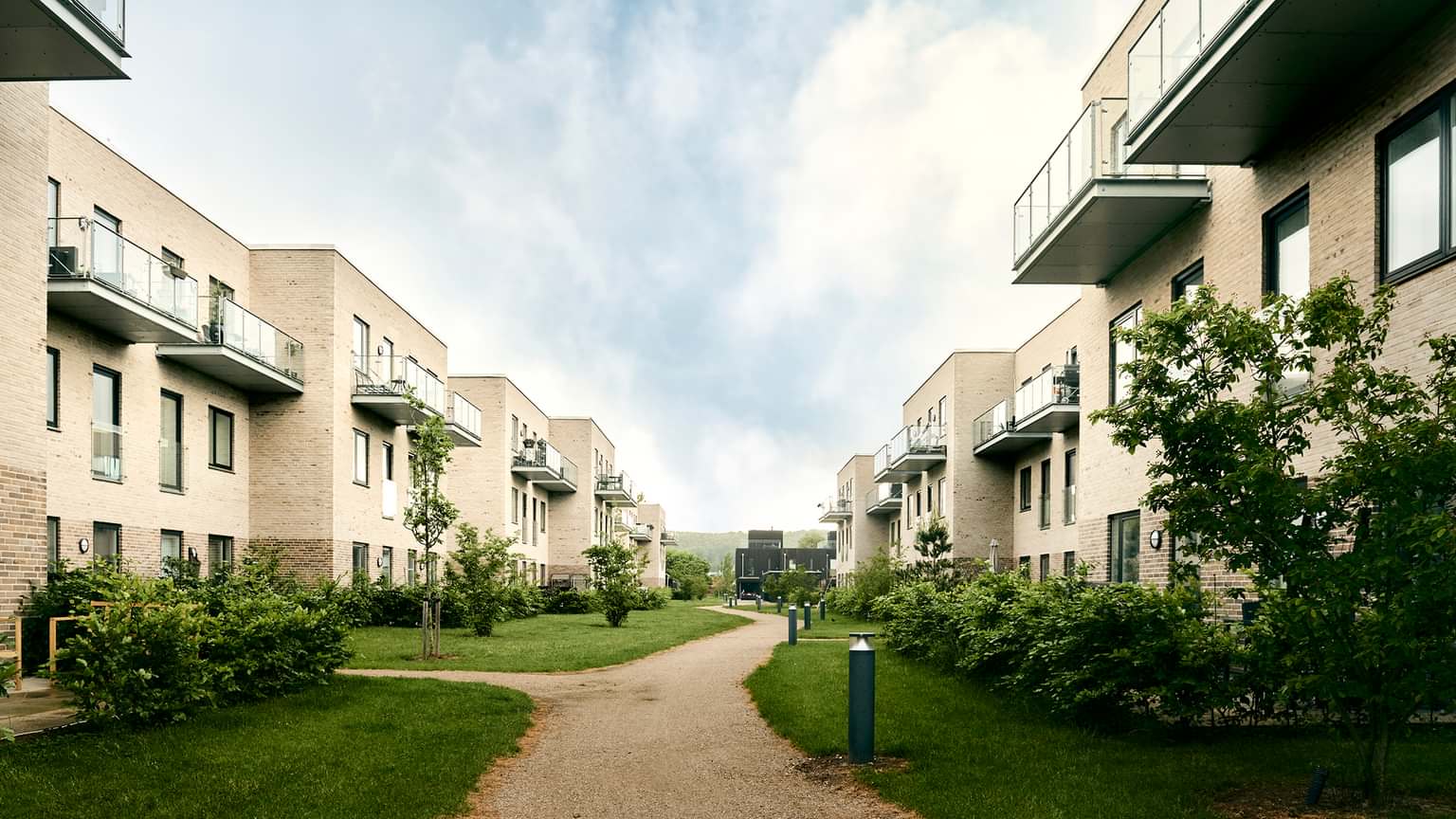 The housing is divided into three areas: Strandparken, Strandgaderne and Fjordhusene.