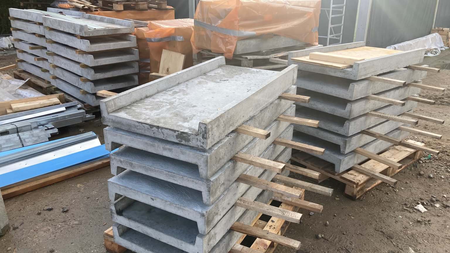 “We’re casting a total of 150 meters of gutters. Each time we pour concrete on-site, there’s half to a full cubic meter of surplus concrete we can use for the gutters. Instead of discarding the excess, we pour it into molds and cast one to two elements at a time.”