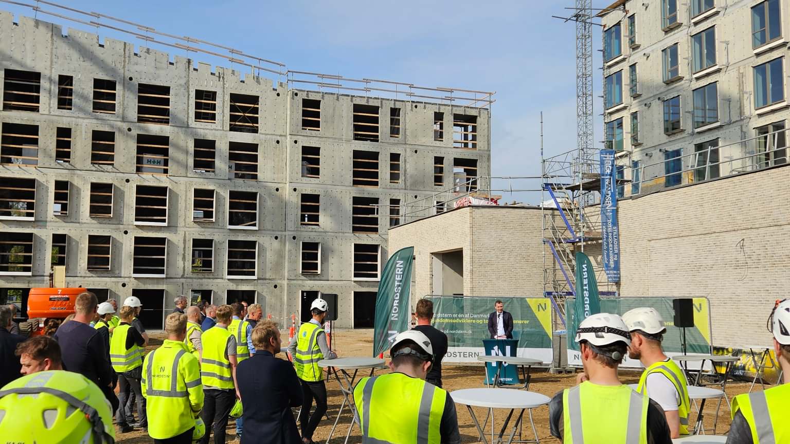 ”Det er en spændende beliggenhed at få lov at udvikle et nyt byområde på. Det har været en fornøjelse at samarbejde med kommunen om projektet, og det er mindst lige så stor en fornøjelse at se det blive til virkelighed i hænderne på de dygtige håndværkere, vi fejrer i dag," siger Johan Gottschalk, Projektudviklingsdirektør, Nordstern.