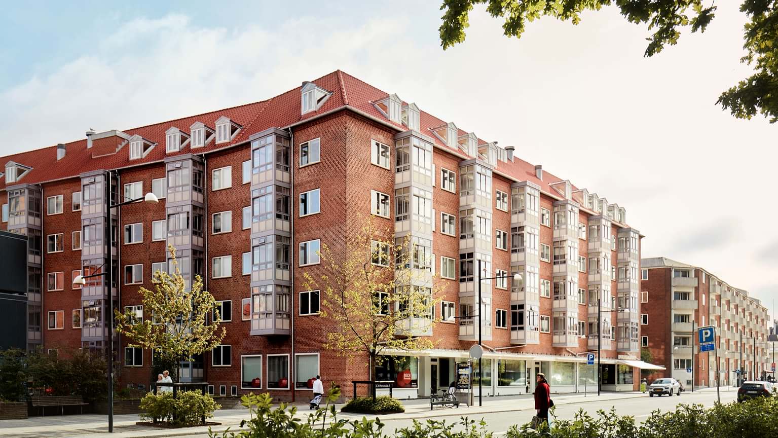 Renovering og ombygning af 113 almene boliger fordelt på ti opgange, samt etablering af tagboliger for Bolig Horsens.