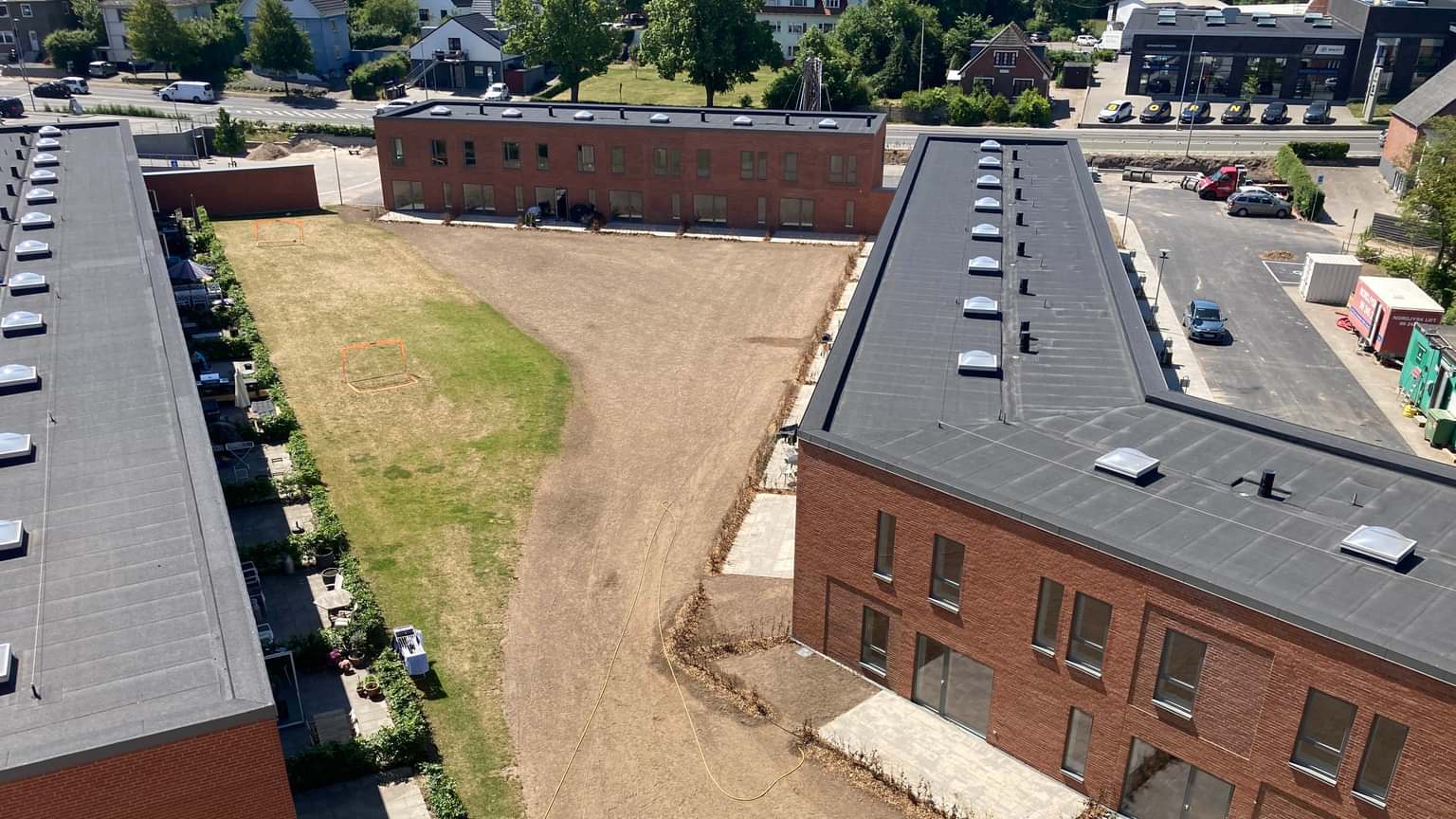 Et fælles gårdmiljø bliver det sociale samlingspunkt og et opholdsareal for de besøgende, der ligeledes kan spise på den udadvendte café i stueetagen.