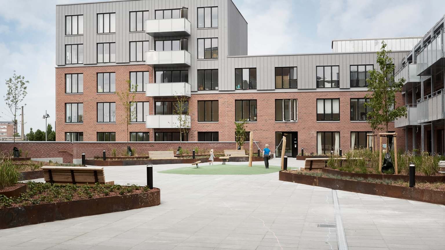 Som et tryghedsskabende tiltag er højden på læ- og støttemure reduceret for at skabe oversigt i terræn.