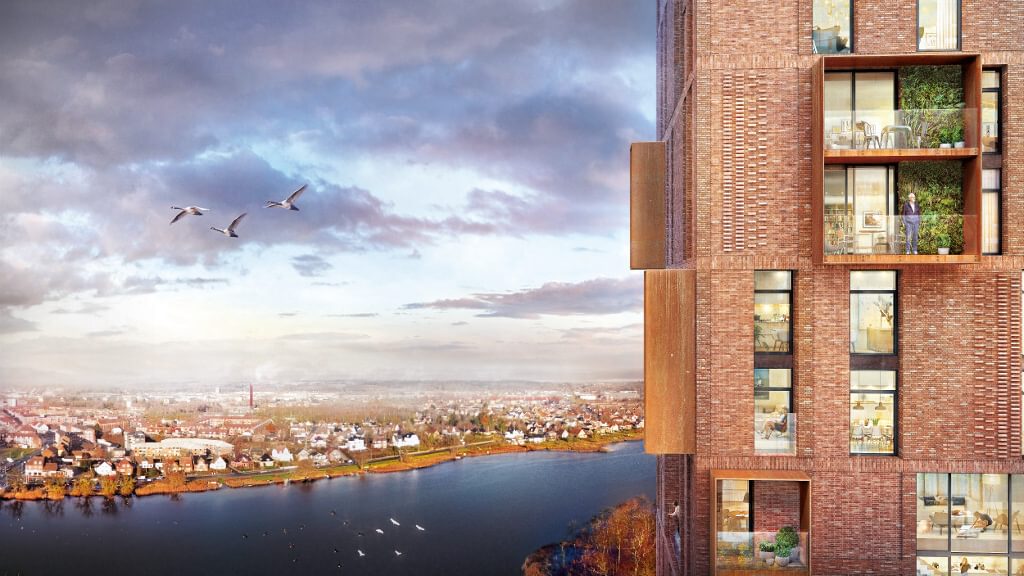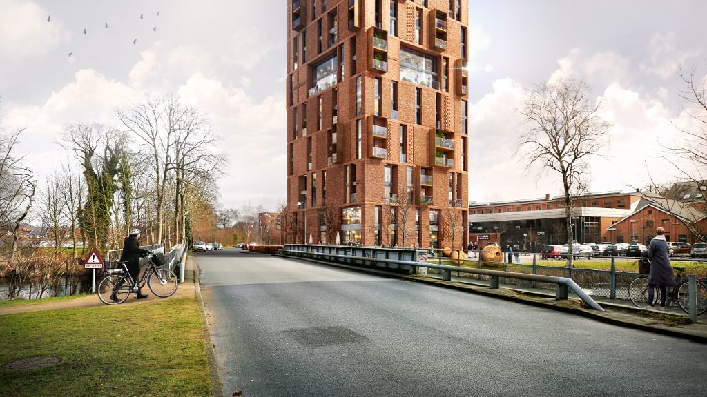 Et 70 meter højt bygningstårn er opført på grunden, hvor den tidligere papirfabrik i Silkeborg var placeret.